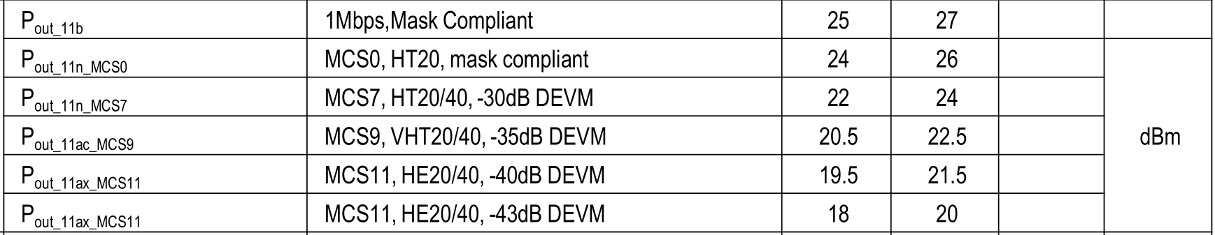 1. Supports 802.11a/b/g/n/ac Wave1/Wave2/ax protocols; 2. Supports IEEE 802.11ax, IEEE 802.11ac wave2, wave1, and 802.11a/b/g/n simultaneous operation; 3. IEEE 802.11b/g/n/ax: 2.4 GHz–2.4835 GHz; IEEE 802.11a/n/ac/ax: 5.150 GHz–5.350 GHz, 5.725 GHz–5.850 GHz; 4. 2.4 GHz, 2 streams, 2×2 MU-MIMO; 5 GHz, 2 streams, 2×2 MU-MIMO; 5. OFDM: BPSK@6/9Mbps, QPSK@12/18Mbps, 16QAM@24Mbps, 64QAM@48/54Mbps; DSSS: DBPSK@1Mbps, DQPSK@2Mbps, and CCK@5.5/11Mbps; MIMO-OFDM: BPSK, QPSK, 16QAM, 64QAM, 256QAM, and 1024QAM.