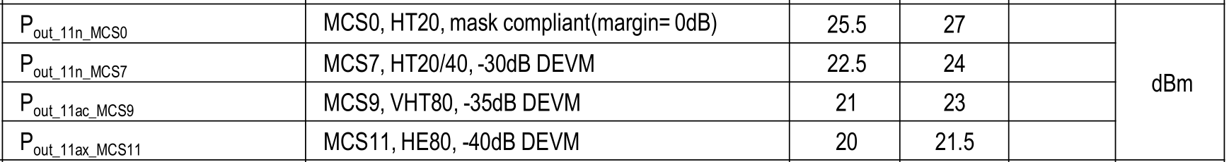A: Under AX80_MCS11, VC5788-21 can achieve approximately 21.5dBm at EVM -40dB DEVM.