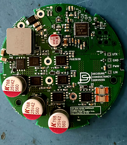 1) Sensorless BLDC control with CAN, UART, and PWM input 2) Automotive compliant EMI filter design 3) All-SMD layout for back-housing mounting 4) High performance at low speed & low load 5) customizable flow and speed control