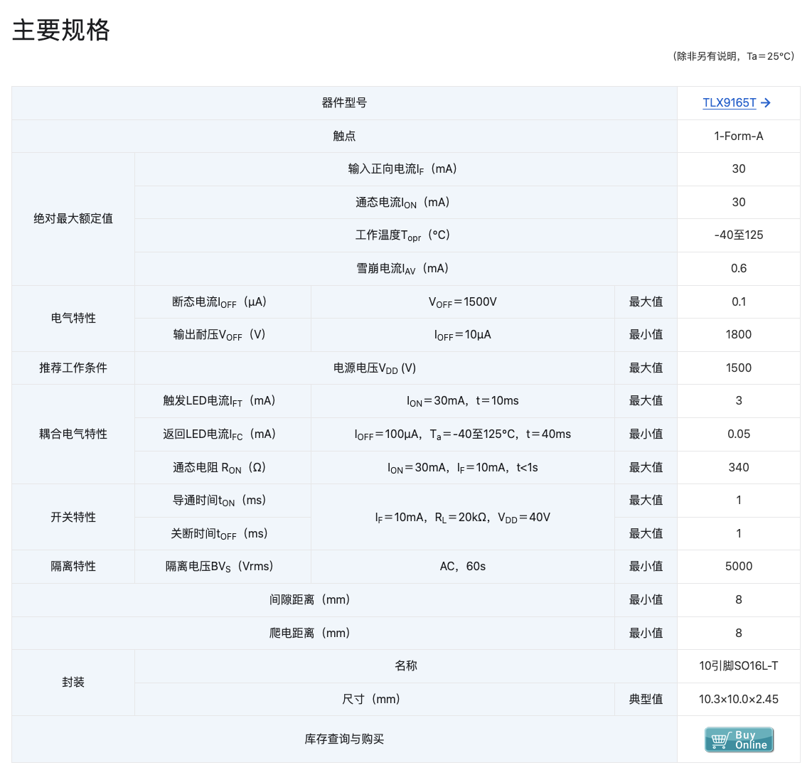 - 输出耐压:VOFF=1800V(最小值)